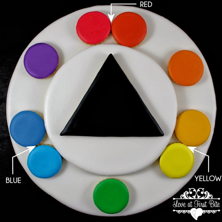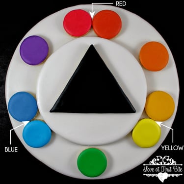 Here is a diagram by Rebekah Shaw (Cookies and Color at LoveAtFirstBiteYork.Blogspot.com) using frosted cookies to show color bias as tertiary colors: